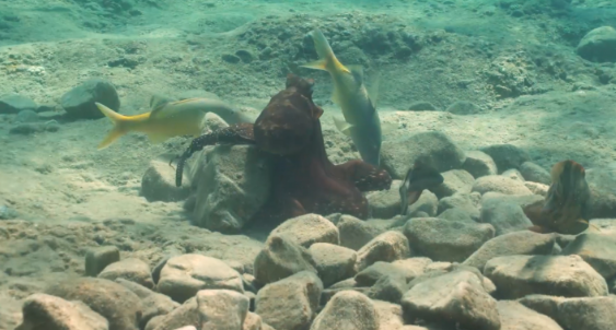 Polvos são flagrados caçando com peixes e dando "socos" em animais oportunistas