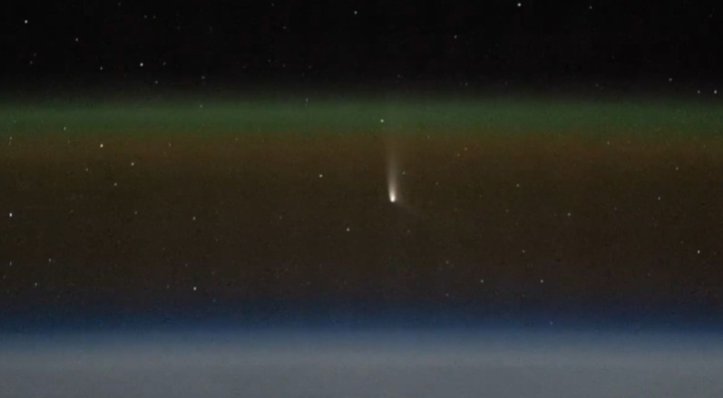 O astronauta da agência espacial dos Estados Unidos (Nasa), Matthew Dominick, capturou uma visão do cometa Tsuchinshan-ATLAS na Estação Espacial Internacional. A gravação dura apenas alguns segundos.